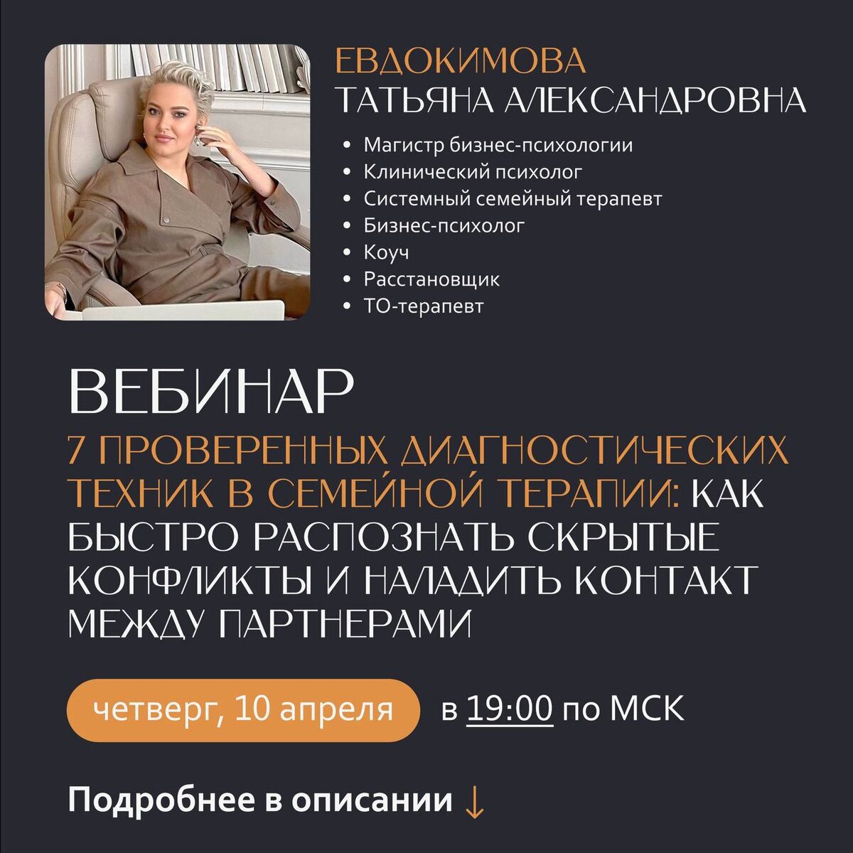Π½ΠΈΠΊ Π² ΡΠ΅ΠΌΠ΅ΠΉΠ½ΠΎΠΉ ΡΠ΅ΡΠ°ΠΏΠΈΠΈ: ΠΊΠ°ΠΊ Π±ΡΡΡΡΠΎ ΡΠ°ΡΠΏΠΎΠ·Π½Π°ΡΡ ΡΠΊΡΡΡΡΠ΅ ΠΊΠΎΠ½ΡΠ»ΠΈΠΊΡΡ ΠΈ Π½Π°Π»Π°Π΄ΠΈΡΡ ΠΊΠΎΠ½ΡΠ°ΠΊΡ ΠΌΠ΅ΠΆΠ΄Ρ ΠΏΠ°ΡΡΠ½Π΅ΡΠ°ΠΌΠΈΒ» βΆοΈ ΠΠΎΠ³Π΄Π°: 10 Π°ΠΏΡΠ΅Π»Ρ π ΠΠΎ ΡΠΊΠΎΠ»ΡΠΊΠΎ: 19:00 ΠΠ‘Π πΠ‘ΠΏΠΈΠΊΠ΅Ρ: ΠΠ²Π΄ΠΎΠΊΠΈΠΌΠΎΠ²Π° Π’Π°ΡΡΡΠ½Π° ΠΠ»Π΅ΠΊΡΠ°Π½Π΄ΡΠΎΠ²Π½Π°, ΠΌΠ°Π³ΠΈΡΡΡ Π±ΠΈΠ·Π½Π΅Ρ-ΠΏΡΠΈΡ