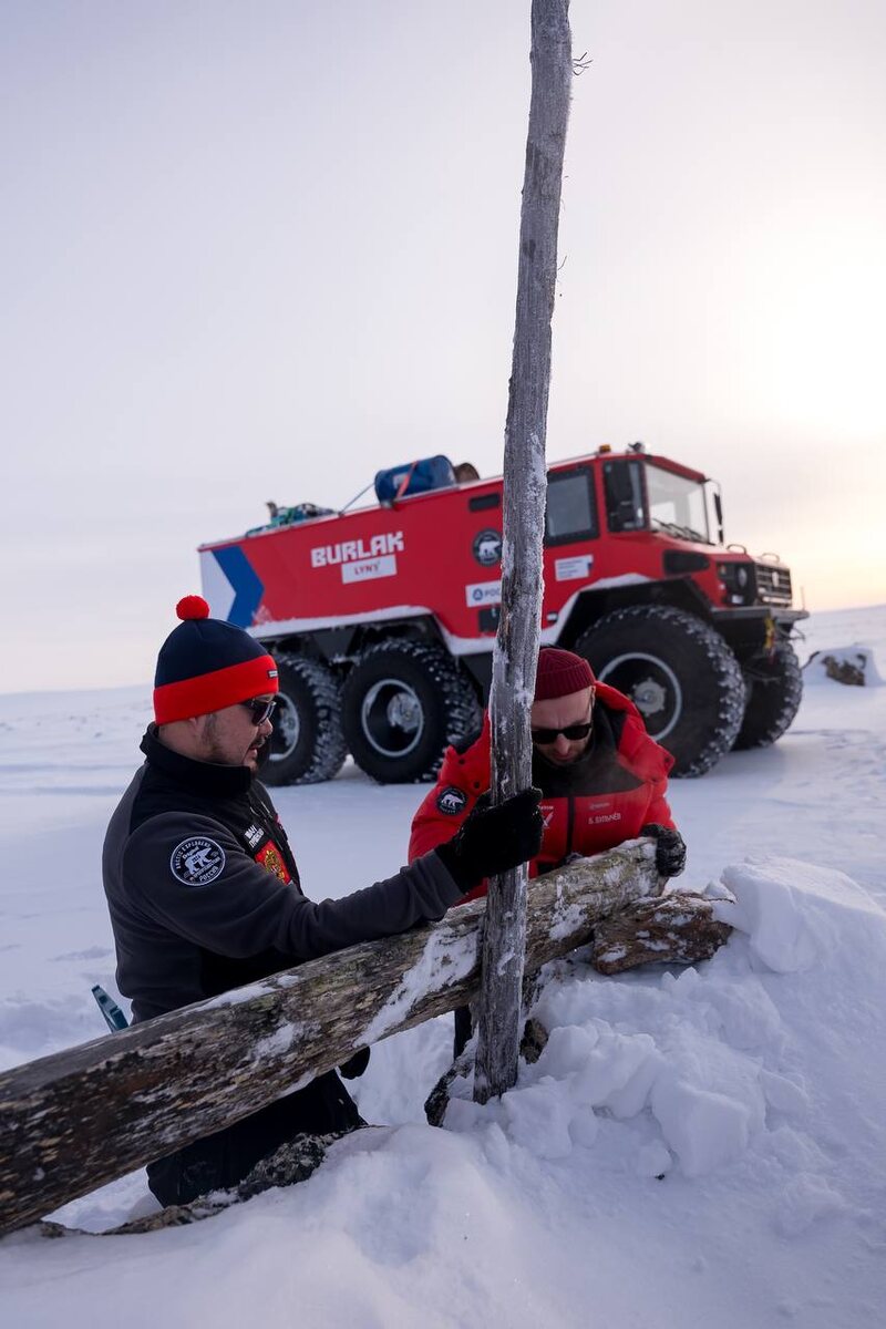 Восстановленный знак Норденшельда на южном берегу бухты Актиния Бухта Актиния, расположенная на острове Таймыр, была названа в 1878 году известным исследователем Адольфом Норденшельдом за обилие в ней морских моллюсков-актиний. Здесь был оставлен знак, который на долгое время стал символом научной работы и первооткрывательства. В отчёте поручика О. Нордквиста, участника экспедиции Норденшельда от Русского географического общества, упоминается о сооружении каирна и установке бутылки с кратким отчётом о прибытии экспедиции в Таймыр. Норденшельд решил оставить здесь знак в виде валуна с прислоненной к нему деревянной вехой — обломком шеста длиной 3,5 метра. Однако этот памятник не смогла обнаружить и Русская полярная экспедиция Академии наук на яхте «Заря», зимовавшая неподалеку от бухты Актиния в 1900—1901 годах под руководством барона Толля с участием молодого лейтенанта Александра Колчака. Время шло, и только в 1972 году знак Норденшельда был найден Троицким, который описал его и