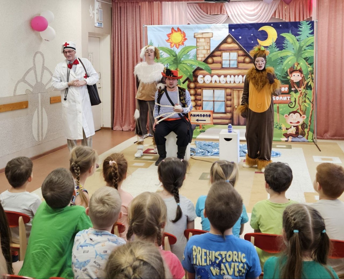 Молодежный театр «Наш мир» радует зрителей всех возрастов! Артисты знакомят маленьких северчан с волшебным миром театра не только у себя в зале, но и на выездных спектаклях, которые проходят в детских садах. 9 апреля артисты выступили перед воспитанниками Детского сада №57 с увлекательной программой «Приключения Айболита и его друзей». Ребята встретились с любимыми героями - Доктором Айболитом и его помщникми обезьянкой Чичи и собачкой Авой, которые в игровой форме напомнили о правилах гигиены и здорового образа жизни Дети получили массу новых впечатлений и остались в полном восторге!