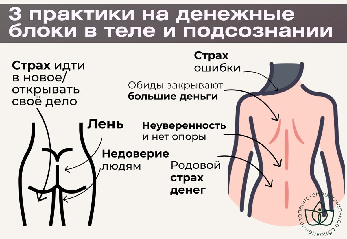 👉 Боли и зажимы в теле мешают расти в деньгах: обиды, страхи, негативные установки остаются в теле и блокируют возможности роста