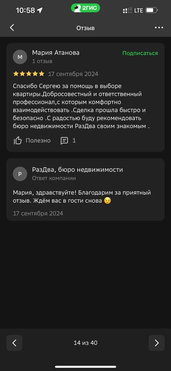 На основе предоставленных отзывов о риэлторах Сергее и Андрее из бюро недвижимости «РазДва» (Новороссийск) можно составить следующий психологический и профессиональный портрет: --- ### 1. Ключевые личные качества - Профессионализм и экспертность Клиенты отмечают глубокое знание рынка недвижимости, умение «выбивать» скидки у застройщиков (например, скидка в 350 тыс. руб.) и юридическую грамотность. - *Пример*: Арсен Ибраимов подчеркивает, что сделки проходят «на 100 из 10», а Роман Аракелян называет их подход «крутым». - Эмпатия и поддержка Риэлторы создают ощущение безопасности, особенно в стрессовых ситуациях (ипотека, удаленные сделки). - *Пример*: Наталья Ивлева: «Не было ни капли страха»; Роман Аракелян: «Переживали больше меня за одобрение ипотеки». - Ответственность и вовлеченность Андрей и Сергей сопровождают клиентов на всех этапах — от подбора вариантов до оформления в банке. - *Пример*: Диана Константинова: «Был на связи в любое время»; Екатерина Кузьменкова: «Все прошло