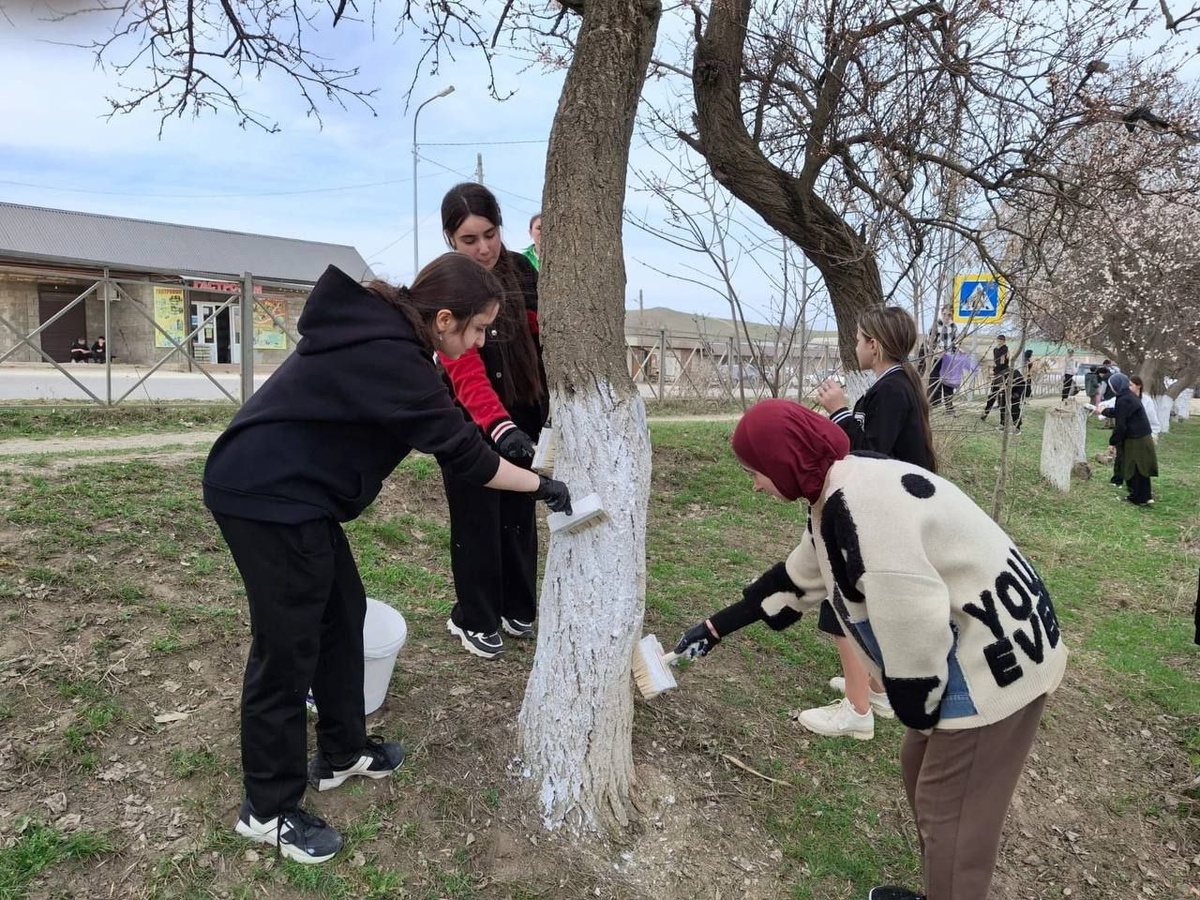 ⚡️Буйнакск районну Тёбенжюнгютей юртундагъы орта школада субботник оьтгерилген. Субботникни барышында айлана якъ тазалангъан, тереклеге акъ чабулгъан. Субботникде охувчу яшлар да, муаллимлер де ортакъчылыкъ этгенлер.