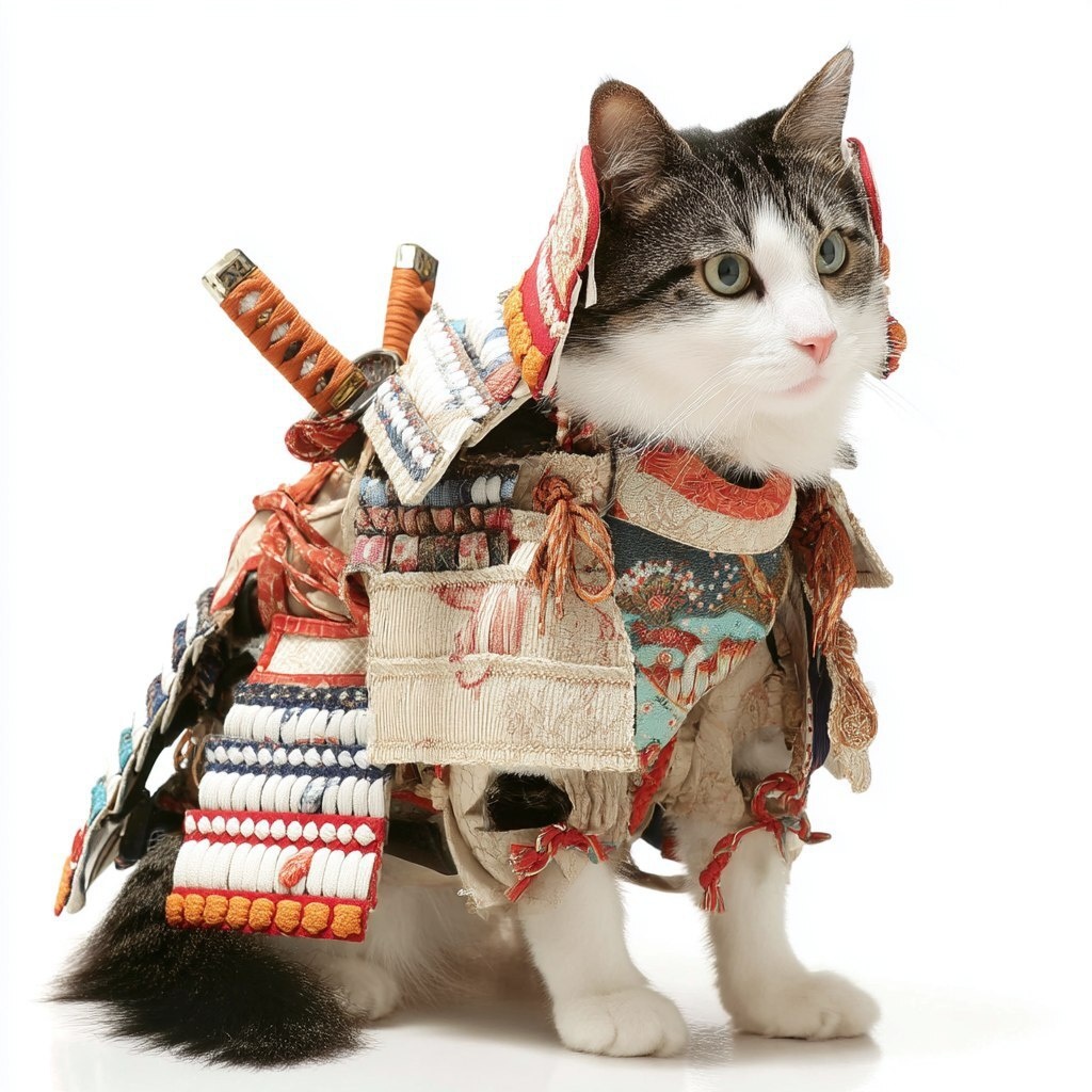 Создано на основе запроса: Bicolor cat dressed as a samurai, pure white background, horse --- Автоперевод: Bicolor Cat, одетый как самурай, чистый белый фон, лошадь Круто получилось? 🤔 https://dzen.ru/id/65c0c65c86e4f837c27b24d7 #ИИ #AI #нейросеть #midjourney #art