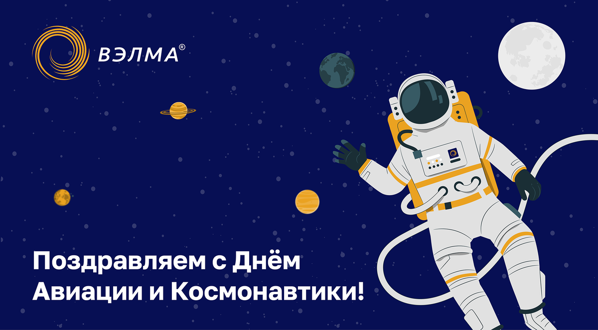 Мы ценим технологии, стремление к совершенству и научный подход. День космонавтики — напоминание о том, как далеко может завести мечта, подкреплённая знаниями и трудом. Пусть вас вдохновляют идеи, движущие человечество вперёд. Смело идите к новым вершинам и не бойтесь заглядывать за горизонт возможного! С уважением, Команда ООО «ВЭЛМА».