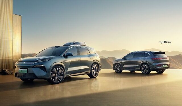 BYD официально запустил Tang L, новый флагманский внедорожник в своей серии Dynasty, в котором представлены как чистые электрические, так и гибридные варианты трансмиссии в шести вариантах по цене от 229 800 до 289 800 юаней (31 700-40 000 долларов США). Построенный на супер-платформе BYD, Tang L представляет собой последний язык дизайна бренда с в значительной степени закрытой передней фасции, подчеркивающей его новую энергетическую идентичность. Транспортное средство измеряет 5040/1996/1760 мм в L/W/H, с колесной базой 2950 мм, расположенной в сегменте внедорожника с середины-большого внедорожника с доступными конфигурациями как шесть, так и семиместных конфигураций. Интерьер принимает дизайн кабины с отличительными двухцветными цветовыми схемами и матовыми серыми металлическими декоративными панелями. Панель инструментов оснащен полностью цифровым приборным кластером и большим 15,6-дюймовым центральным экраном управления, дополненный дополнительным AR-HUD (дисплей Head-Up). Скрытые