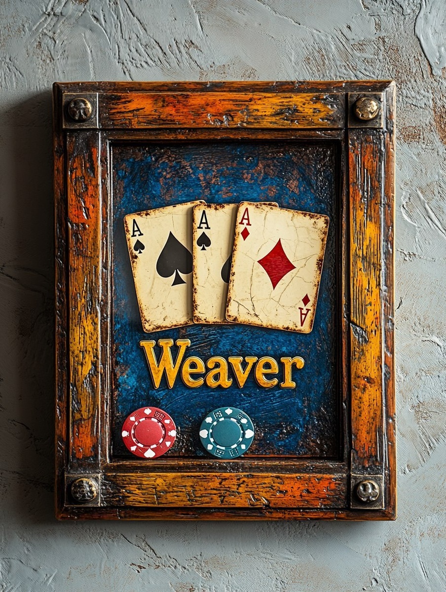 Создано на основе запроса: poker themed picture frame with poker chips and cards, it says "PO Weaver" in the middle of frame, the glass is