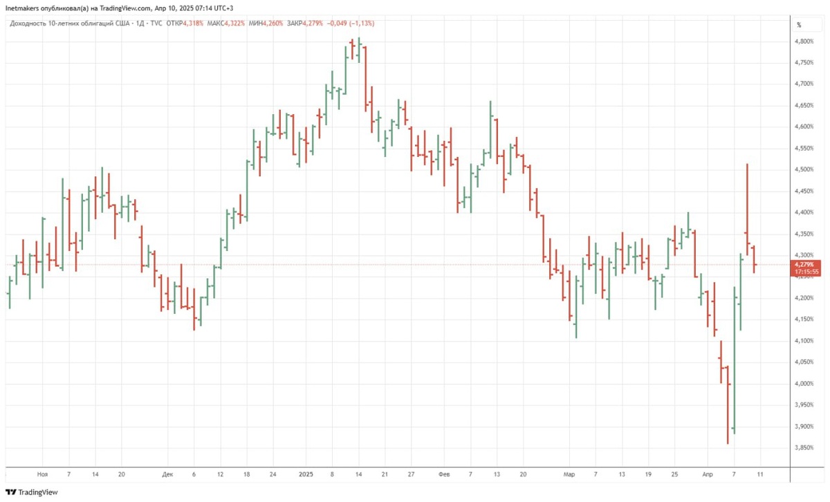 Вашингтон. 10 апреля. ИНТЕРФАКС - Решение президента США Дональда Трампа о приостановке введения взаимных пошлин на 90 дней в отношении более 75 стран было принято из-за растущей обеспокоенности министра финансов США Скотта Бессента по поводу потрясений на рынке облигаций, сообщает телеканал CNN со ссылкой на осведомленные источники.