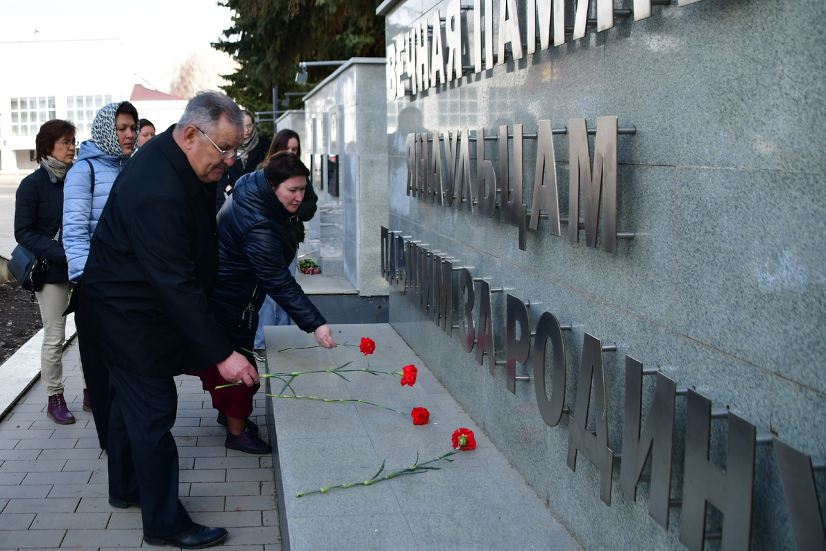 Вот и в день марафона наши глаза оставались на мокром месте. Город Янаул и Янаульский район – родина трёх Героев Советского Союза и двух Героев России. Бюсты новых Героев заняли достойное место на Монументе боевой и трудовой славы в центре города, куда в первую очередь пришли участники марафона из Бураевского, Татышлинского, Калтасинского, Краснокамского районов, города Нефтекамска, чтобы возложить цветы. Янаул – пример того, как надо относиться к памяти защитников Отечества. Помимо того, что здесь большой, красивый мемориал участникам Второй мировой войны, труженикам тыла, детям войны, воинам-афганцам и воинам-чеченцам, появился другой мемориал – погибшим на СВО. В центре Аллеи славы – памятник «Скорбящая мать», передающая всю боль, которую испытывает мать, потерявшая своего сына на поле боя. Эта говорящая скульптура надолго притягивает к себе внимание, выворачивая душу наизнанку. И у всех матерей без исключения сжимается сердце, глядя на расходящиеся по обе стороны памятника «улицы» из гранитных плит с фотографиями и именами погибших бойцов СВО, в основном совсем ещё юных, таких красивых и полных сил ребят.