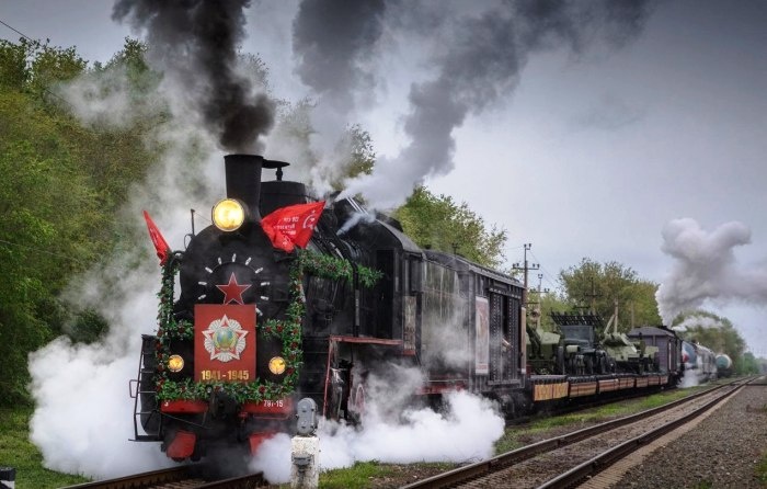 Это историко-патриотический проект «Воинский эшелон», организованный Приволжской железной дорогой при поддержке музея-заповедника «Сталинградская битва», который неоднократно посещал Астраханскую область. С 2018 года - за время реализации проекта - ретропоезд увидели более 230 тыс. человек. В этом году «Воинский эшелон» сформирован из двух действующих паровозов и пяти железнодорожных платформ с техникой времен Великой Отечественной Войны. В числе экспонатов – танки Т-34 и Т-26, бронеавтомобиль БА-64, разнокалиберные пушки и гаубицы. Также в состав поезда включены сценическая платформа, вагон-теплушка и вагон-музей с экспозицией, содержащей материалы о роли железнодорожников в Сталинградской битве. Кроме того, для паровозных бригад была изготовлена железнодорожная форма образца 1943 года. На станцию Астрахань-1 поезд прибудет 20 апреля в 11:00. Фото: пресс-служба администрации г. Астрахани