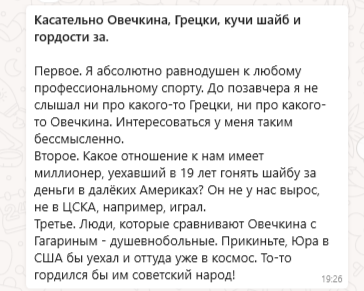 Недавнее событие, автор которому стал хоккеист Овечкин, вызвало бурную дискуссию в одном из родительских чатов, где являюсь участником.