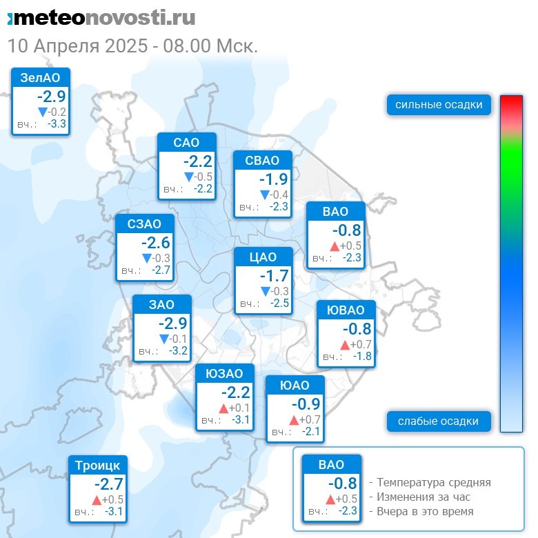 В 8:00 в Москве было от -3.9°C до -0.6°C, средняя температура -1.9°C #погода #Москва #весна #температура #10апреля #четверг