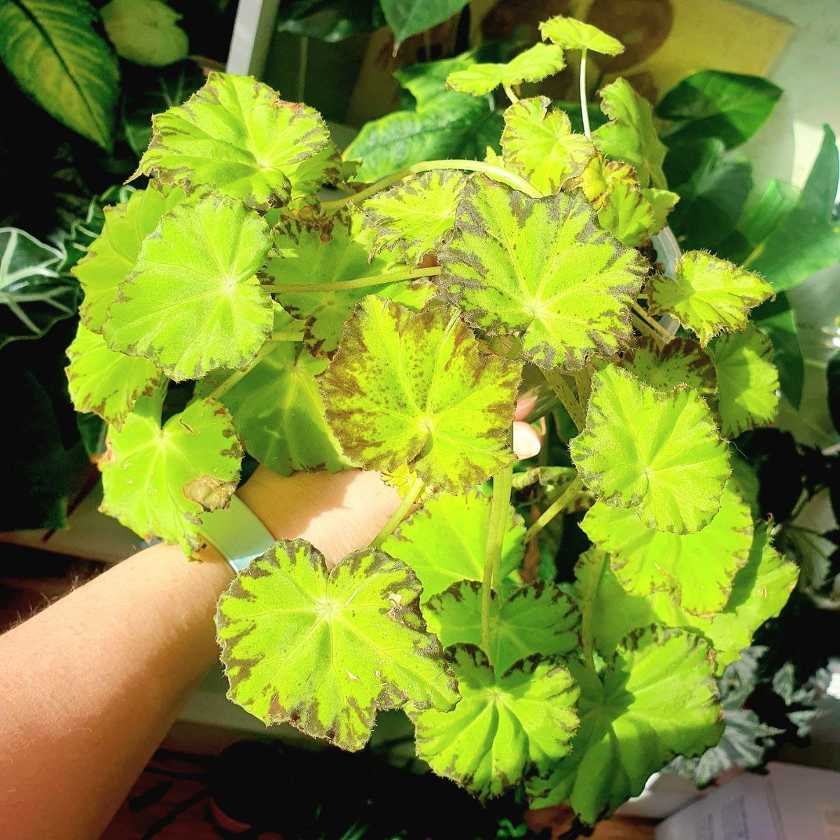 #бегония Ослепительна в лучах весеннего солнышка Бегония Лима Лав 💚 Чудесно чувствует себя на фитиле, вовсю пускает новые листочки. Очень яркая мадемуазель 🤩