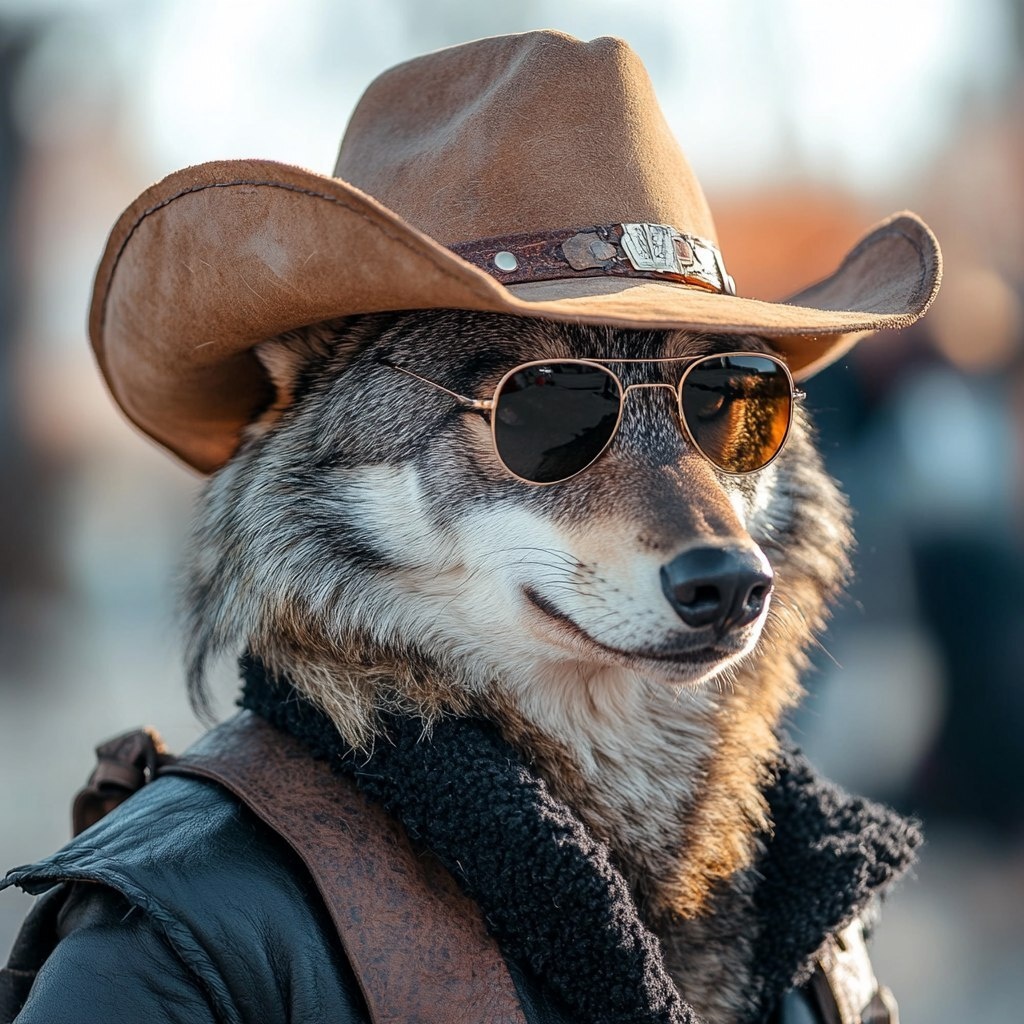 Создано на основе запроса: Make a Wolf as a Cowboy with sunglasses --- Автоперевод: Сделайте волк как ковбой с солнцезащитными очками Как тебе такая генерация? 🤔 https://dzen.ru/id/65c0c65c86e4f837c27b24d7 #ИИ #AI #нейросеть #midjourney #art