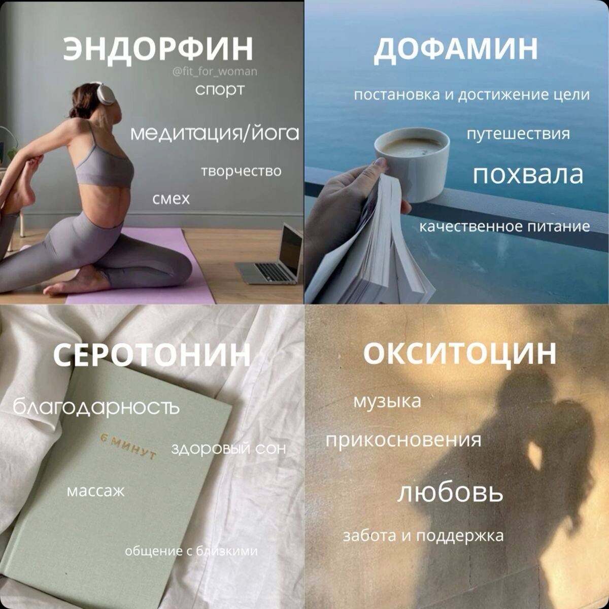 ☀️ Вчера легла до 22:00, сегодня проснулась в 5:30 и выспалась ) но позволила себе валяться еще и доспала до 8:00. Так прекрасно себя чувствую 🌿 Все еще читаю 📖 книгу про сон 💤 и как его наладить и насколько же это важно. ☝🏼 Дочитаю , обязательно поделюсь, у меня же челлендж 40 книг за год ) Искала картинку для утренней мотивации. Нашла про гормоны, очень подборка эта понравилась. 🌱Меня спрашивают периодически, почему я на позитиве всегда и как найти такую сильную внутреннюю опору? Нужно уметь давать себе все это - наполнять себя, будут и силы и энергия и хорошее настроение. ☀️ у меня уже все описанное на автомате, я даже не думаю, а что мне сделать, если я устала или грустная, оно уже вшито на подкорку. #inspi_life