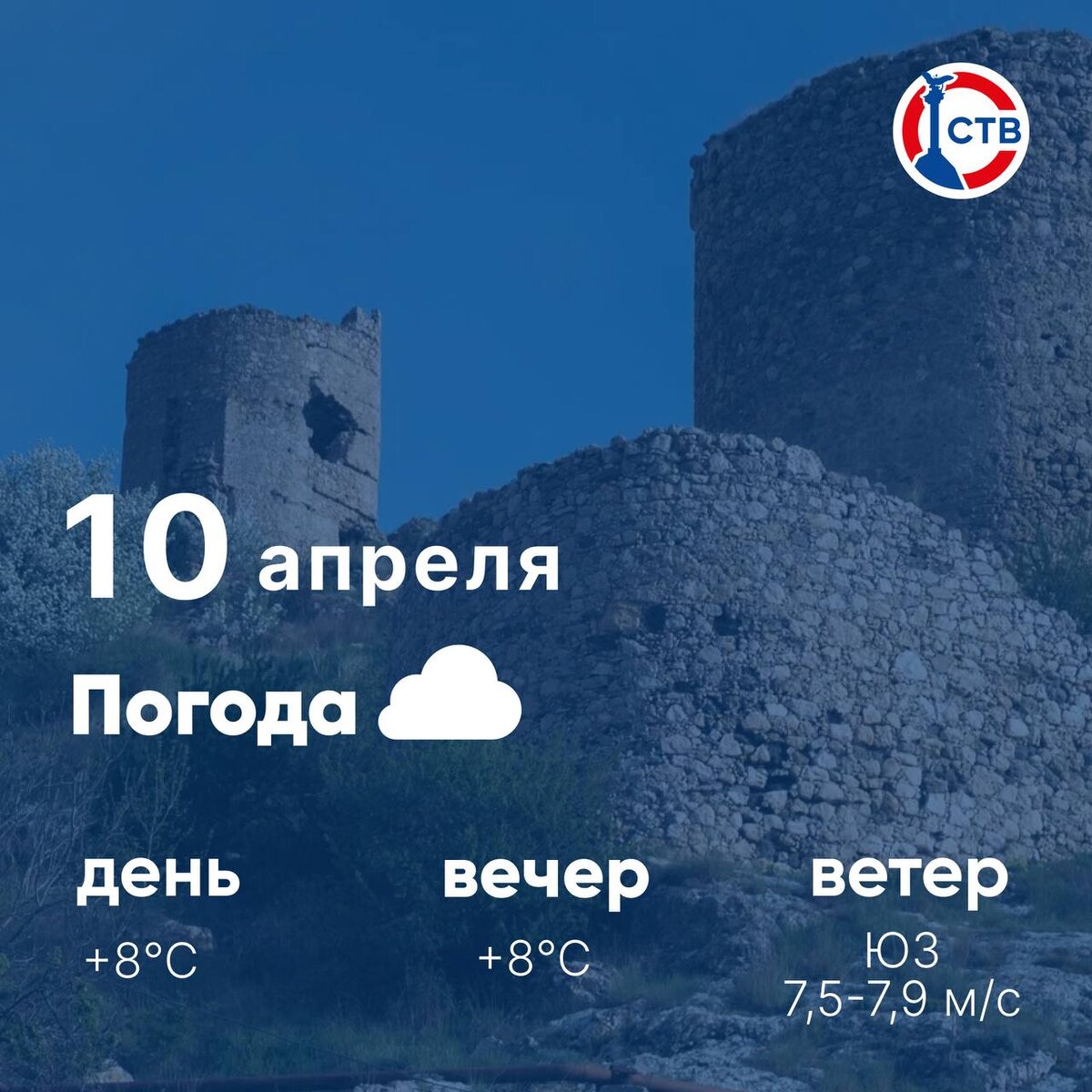 ☁️ Доброе утро, севастопольцы! Сегодня, 10 апреля, в городе пасмурно. Синоптики обещают 8 градусов тепла. Одевайтесь потеплее! 📺 Подписывайтесь на СТВ