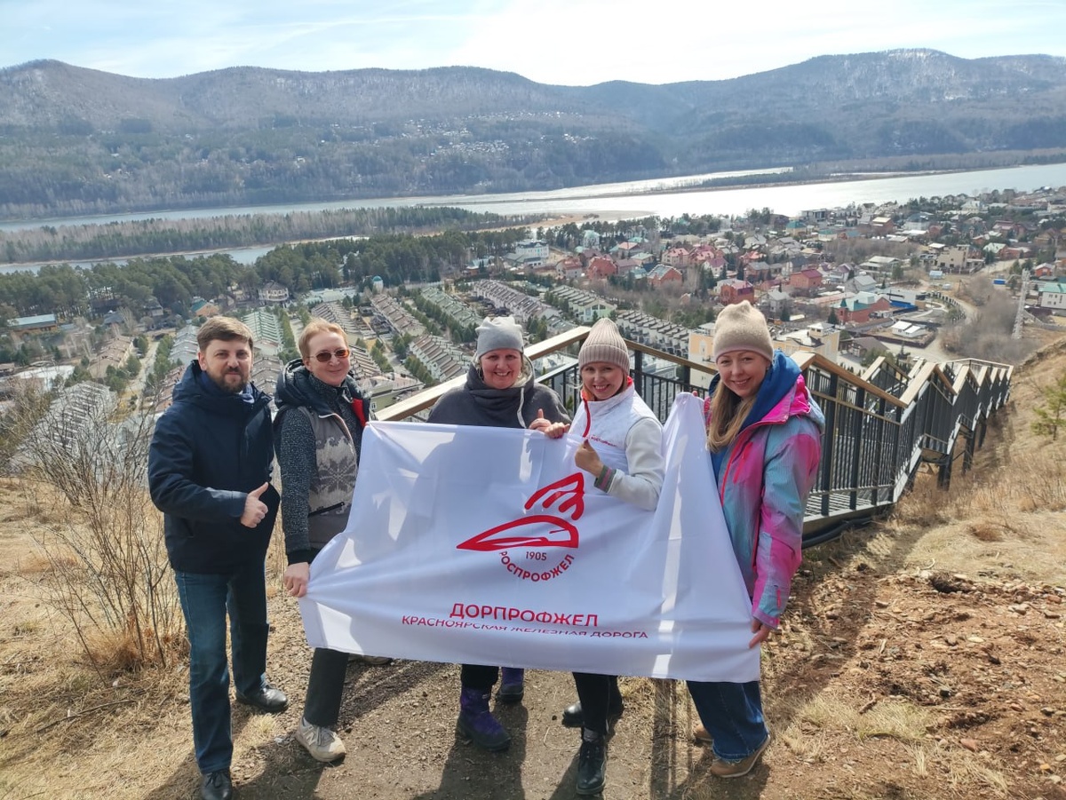 📆 Своё восхождение мы посвятили 89-й годовщине со дня выхода первого номера газеты «Красноярский железнодорожник», которая отмечается сегодня, 10 апреля, а также 120-летию Российского профессионального союза железнодорожников и транспортных строителей, которое состоится 21 апреля.