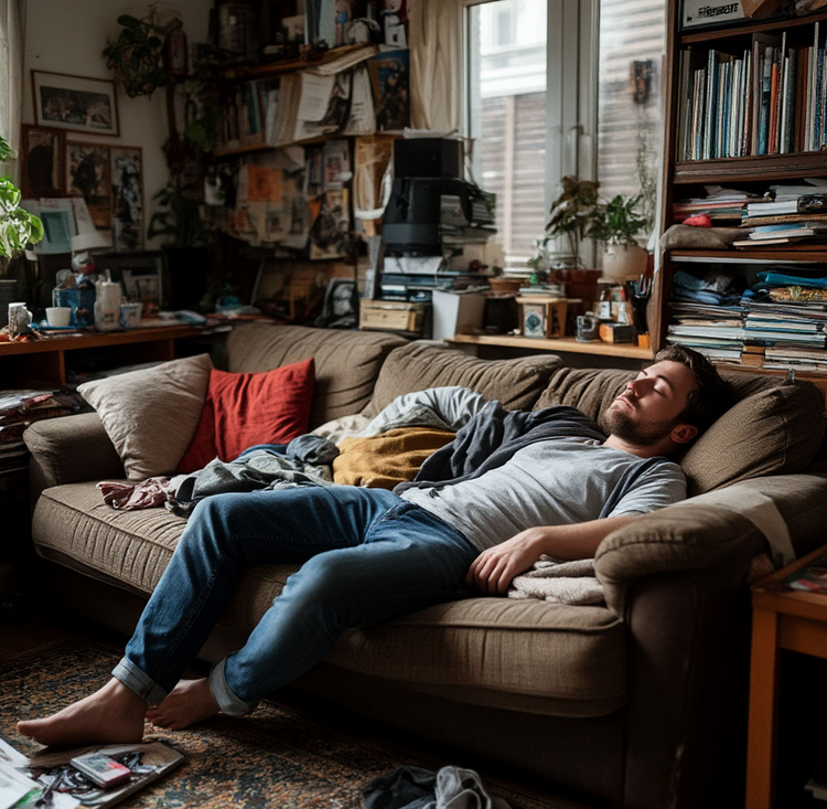 Квартира была в ужасном состоянии: грязная посуда, разбросанные вещи, испорченная мебель.