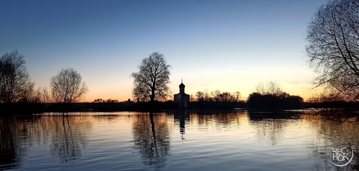 Раз уж на то пошло, вспомним, какой разлив был у храма Покрова на Нерли ровно год назад. А что сейчас? Снега...