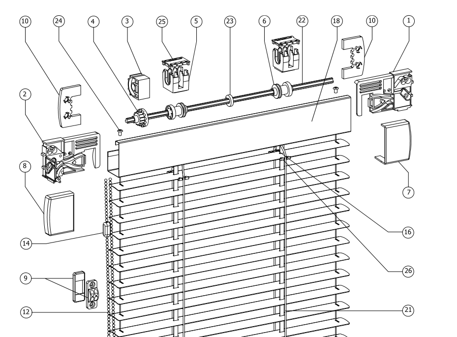 Комплектация для горизонтальных деревянных и бамбуковых жалюзи 25мм
