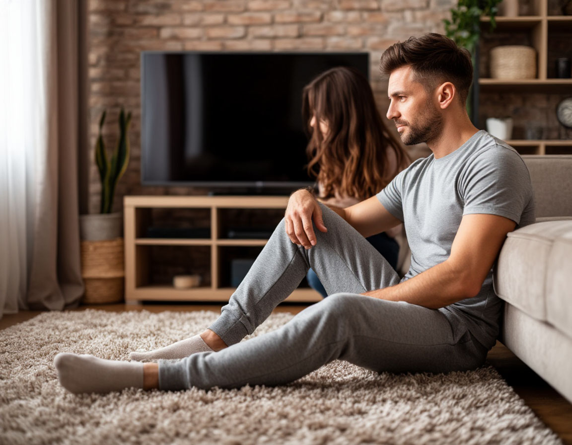 Рита мнется, но все же соглашается. Включаю телевизор, выбираю какой-то фильм. Мне не важно, что там показывают. Сам сажусь на ковер у ног Риты.