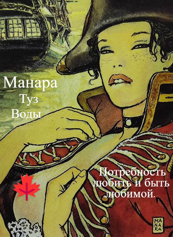 Девушка накинула на себя мужскую одежду, военный китель. В детали есть глубокий смысл. Во-первых, мужские вещи (особенно такие подчеркнуто мужские, как военная форма) усиливают янскую энергию женщины, внутреннее мужское начало, активизируют анимус. Девушка Туза Воды внутренне очень женственна, пассивна и восприимчива, поэтому всевозможными внешними средствами пытается компенсировать недостаток мужского начала. Надев мужской костюм, она поднимает внутренний потенциал, приобретая больше активной энергии. Во-вторых, эта одежда неизбежно несет на себе запах мужчины, а девушка Туза Воды необычайно чувствительна. Резкий, новый запах ее возбуждает, порождая эротические фантазии. Поэтому карта иногда может указывать на важную роль аромата.