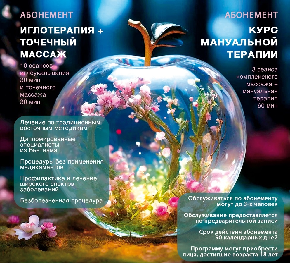 Медицинский центр вьетнамской акупунктуры «Вьетмед» отмечает в апреле этого года свое десятилетие! За этот юбилейный срок он обрел тысячи благодарных пациентов, которые, пройдя лечение у высоко квалифицированных специалистов, значительно улучшили качество своей жизни и обрели здоровье. В восточной практике, так же, как и в традиционной медицине важна регулярность. Сходить на один сеанс и выпорхнуть обновленным человеком, к сожалению, не получится. Зато абонементские программы непременно принесут облегчение и даже полное выздоровление. Присмотритесь к ним. Например, абонементы: курс мануальной терапии и иглотерапия + точечный массаж – именно они являются хитами в центре вьетнамской акупунктуры «Вьетмед»! Узнать более подробную информацию и записаться на прием можно на сайте www.vietmed.ru или по тел.: +7 (495) 357-26-68