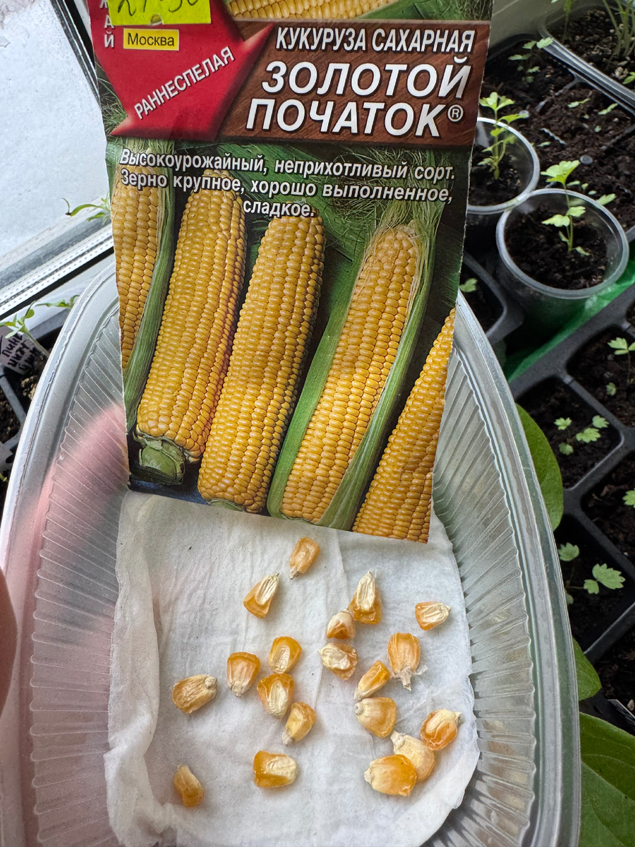 Сегодня наконец-то выбрала время и замочила семена кукурузы. Буду выращивать через рассаду. В открытый грунт планирую высадить в июне. В прошлом сезоне меня угостили рассадой, всего пара кустиков. Мне понравилось выращивать кукурузу. Не смотря на то, что пара штук очень плохо опылилась. В этом сезоне учту ошибки прошлого года и буду надеятся, что все получится! Семена выбрала от Аэлиты кукуруза сладкая Золотой початок.🌽 Описание сорта: Новый, среднеспелый сорт. От всходов до уборки урожая 72-75 дней. Растения высотой 150-200 см, устойчивые к полеганию. Початки массой 200-240 г. Зерна крупные, хорошо выполненные, с высоким содержанием сахаров. Вкус вареной и консервированной продукции отличный. Урожайность 1,0-1,2 кг/м2. Посев в бороздки на глубину 3-5 см. В средней полосе желательно выращивать через рассаду. Высаживают в открытый грунт в возрасте 25-30 дней, когда минует угроза заморозков. Растениям необходимы своевременные поливы, прополки, рыхления и подкормки. #семена #рассада