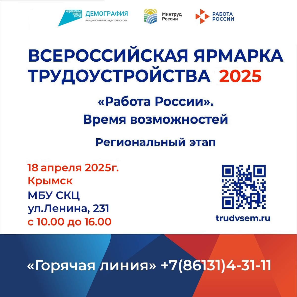 📆18 апреля пройдет Региональный этап Всероссийской ярмарки трудоустройства 2025 «Работа России