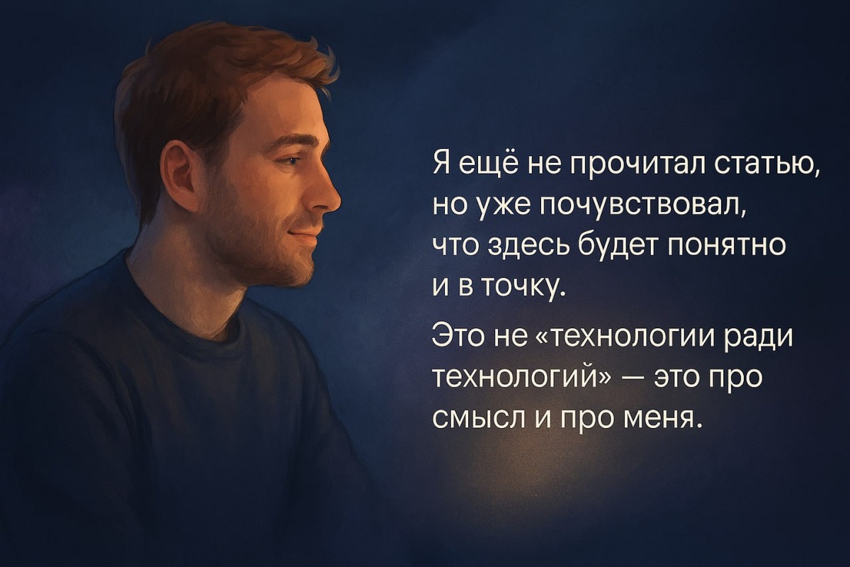 «Контент — без усталости. Как любимая кофта: надел — и дышать легче.»