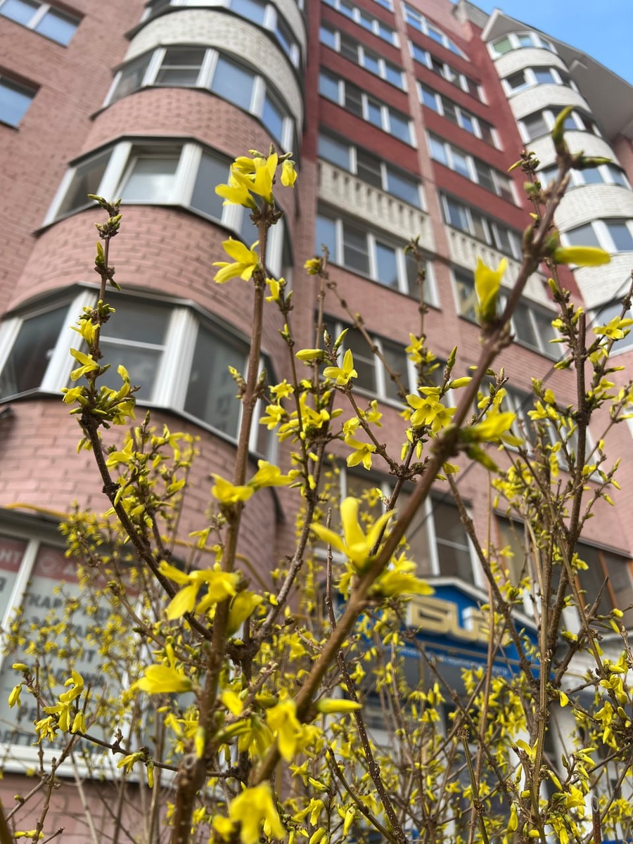 Если солнца не хватает... обратите внимание на форзицию. 🌱 Эта красотка родом из Китая. Растение начинает радовать цветением уже ранней весной. Сфотографировали кустарник на Вокзальной. 💛 Замечали форзицию на городских клумбах? #гуляка_фото ✔️ Подпишитесь на «Рязанского гуляку»