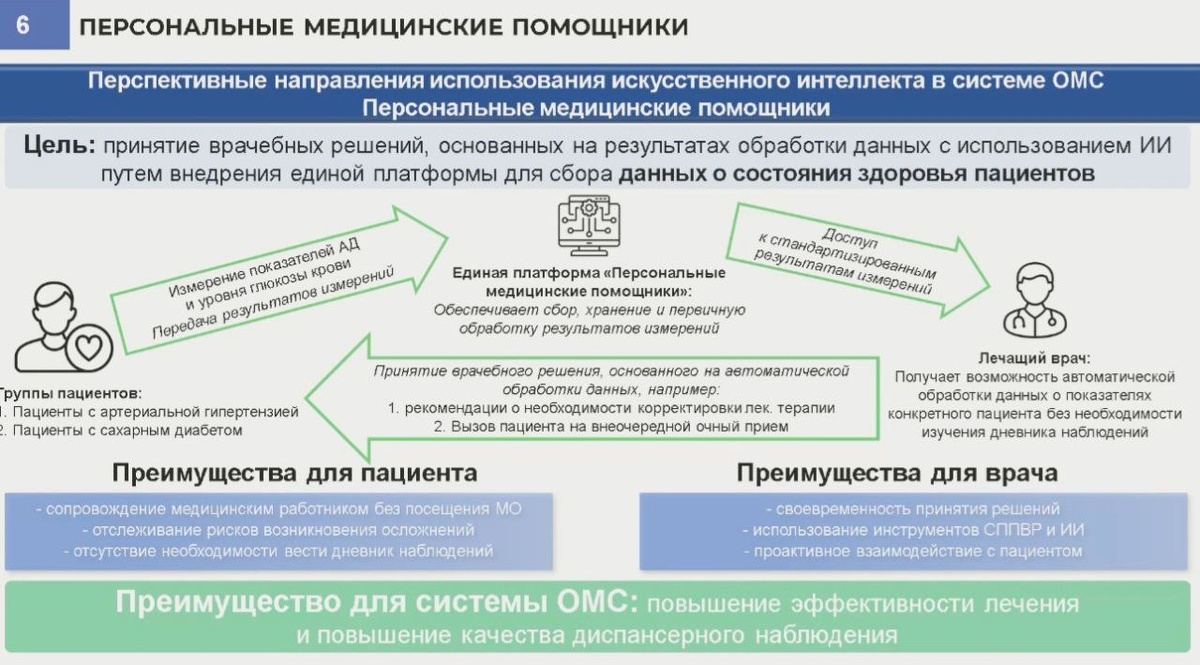 ФОМС активно занимается вопросом внедрения персональных медицинских помощников, проинформировала заместитель председателя фонда Ольга Царева на круглом столе «Технологии искусственного интеллекта в здравоохранении: проблемы и пути решения» в Совете Федерации.