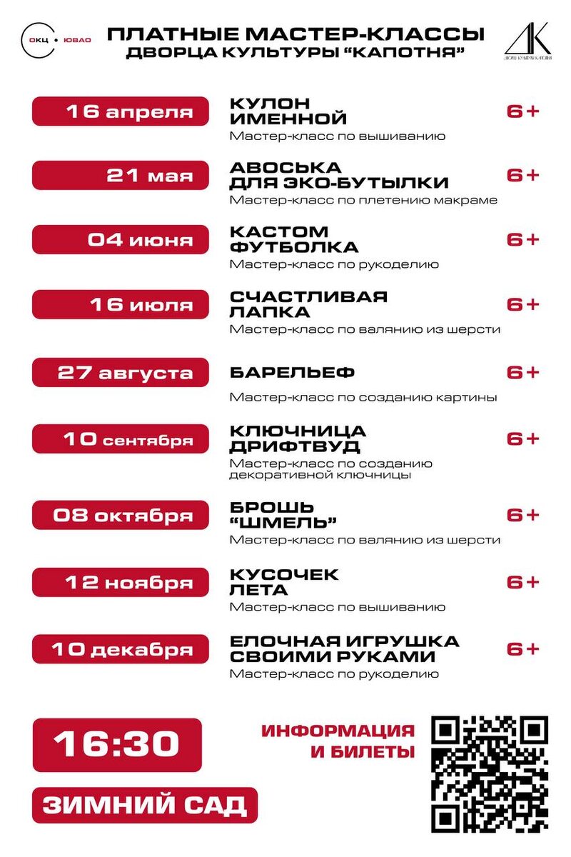 💛 Афиша наших чудесных мастер-классов на целый год вперед! Занятия ручным трудом не только позволяют отвлечься от рутинных дел, но и отлично влияют на когнитивные процессы, позволяют нам улучшить мелкую моторику рук и отлично провести время, создавая удивительную красоту своими руками. Хотите еще сильнее погрузиться в мир творчества и создать полезную и уникальную вещь своими руками? Представляем серию ярких профессиональных мастер-классов. Все они уже доступны по ссылке: https://iframeab-pre2925.intickets.ru/ Вышивка, валяние из шерсти, дрифтвуд… и многое другое ждет вас по ссылке выше ⬆️ Выбирайте то, что вам по душе, покупайте билет и приходите! Ждем вас! Участие в мероприятиях платное 6+ #дккапотня #культура #московскиекультурныецентры #ялюблюмоскву #вместескультурой