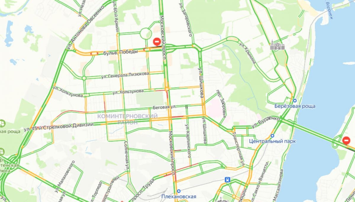 Очередные пробки растянулись на Московском проспекте, на этот раз причина кроется в работе светофоров. Об этом сообщили коллеги из "TV Губернии". Водители сообщают, что сервис «Яндекс.Карты» не отображает реальную ситуацию с заторами на дорогах. Так, на карте Набережная Массалитинова "зеленая", а на самом деле там пробка. Автомобилисты уже долго не могут добраться до Чернавского моста. Кроме того, горожане сообщают о пробках на пересечении Московского проспекта и Беговой - там не работают светофоры. В администрации города сообщили, что причиной сбоя в работе светофоров стало аварийное отключение электричества. В данный момент специалисты работают над устранением проблемы. Напомним, прошлым вечером воронежцы застряли в очередной пробке на Московском проспекте из-за ДТП. Также небольшая пробка образовалась в районе "Армады" на проспекте Патриотов из-за ДТП.