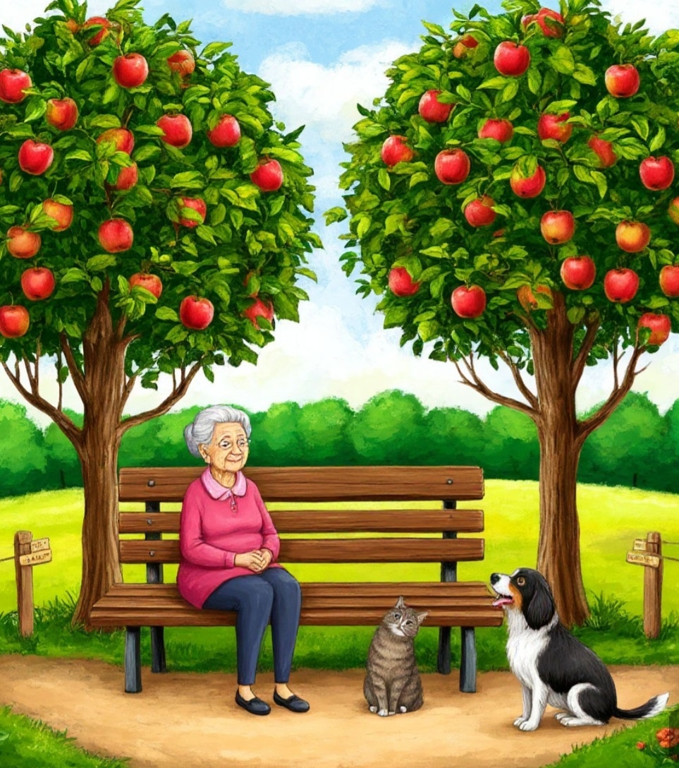 Женщина не стала больше заходить в дом. Она села на скамейку за домом между яблонями, где всегда раньше они отдыхали с мужем после огородных работ. Кот принёс к её ногами пойманную птичку и лег рядом на скамейку. Тут же подбежал Трезорка, понюхал добычу кота и лёг у ног хозяйки.