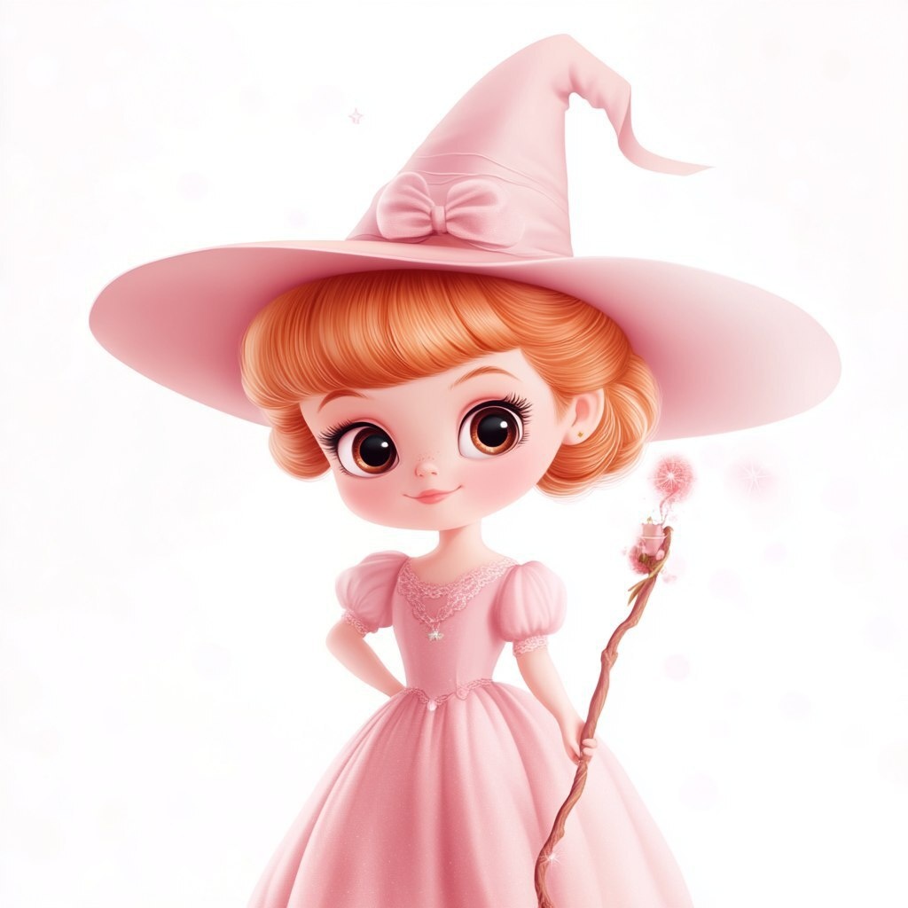 Создано на основе запроса: Glenda good witch, cute character, animated, from the movie wicked/wizard of oz, sweet, light pink