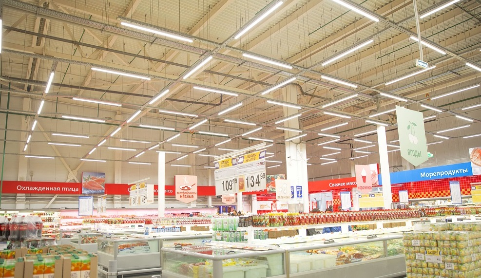 - Все объекты в торговых залах супермаркетов и гипермаркетов – от 500 люксов.