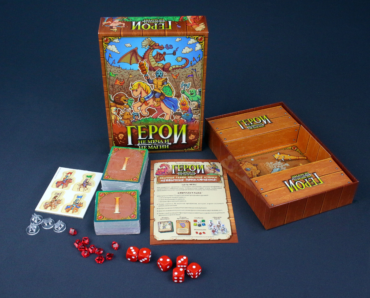 «Герои не меча и не магии» – это настольная игра, в которой игрокам предстоит сразиться с жуткими монстрами, собирать могущественные артефакты и набирать победные очки. Здесь не помогут ни заклинания, ни острие меча – только холодный расчет, удача на кубиках и верная стратегия.