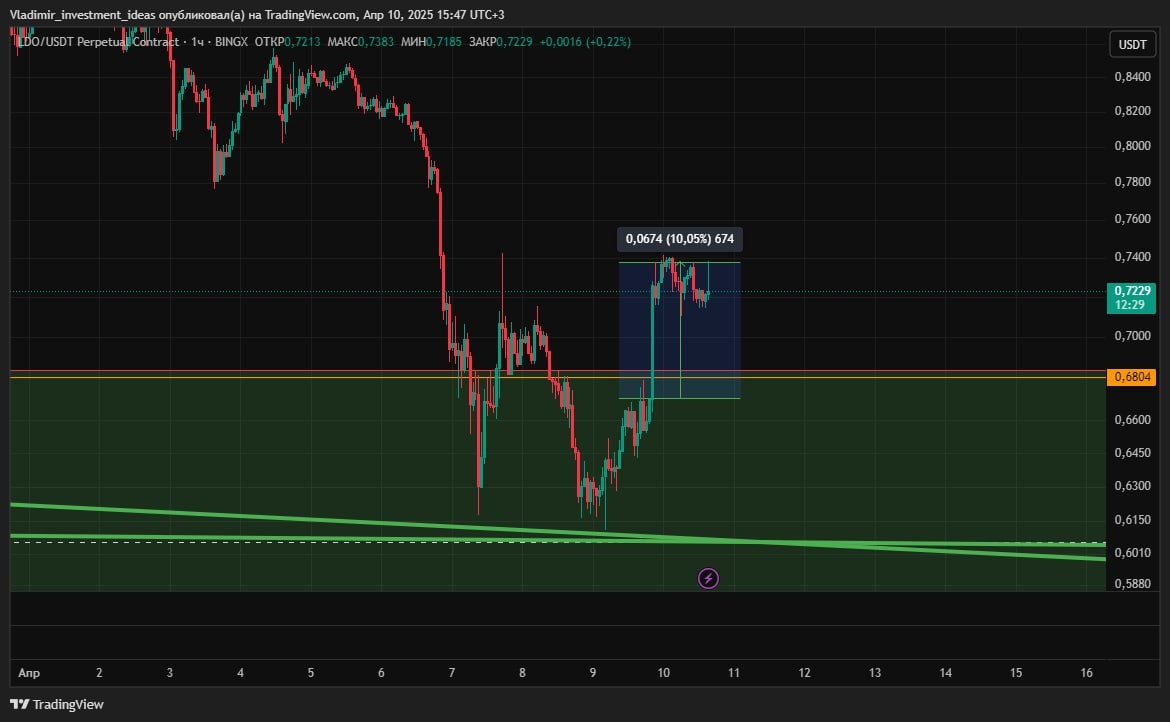 #LDO в плюсе уже 10% чистыми давал от сетапа. Ждем дальше. Стоп на т.в. ставьте.
