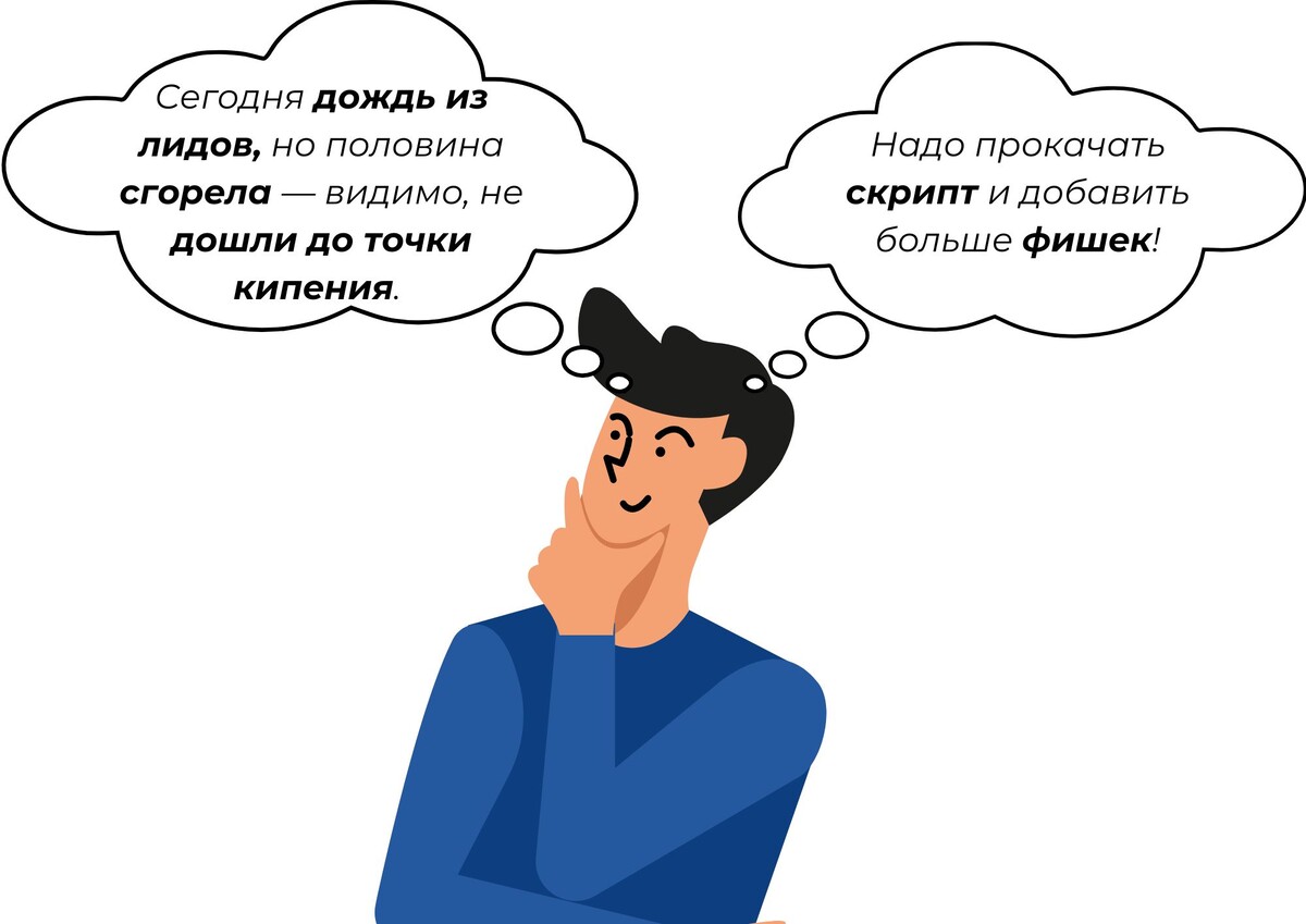 ⚡️ Холодные звонки — обзвон клиентов, которые не ожидают звонка и не проявляли явного интереса к продукту. К счастью, в нашей компании их нет 😊 ⚡️ Горячий лид — потенциальный клиент, который активно заинтересован в покупке. ⚡️ Кикер — бонус или дополнительная мотивация для закрытия сделки. ⚡️ Дождь — период, когда продажи идут плохо или клиенты не активны. ⚡️ Воронка продаж — процесс, через который проходит клиент от первого контакта до покупки. ⚡️ Закрыть сделку — успешно завершить продажу. ⚡️ Лид — потенциальный клиент, который проявил интерес к продукту или услуге. ⚡️ Возражения — причины, по которым клиент не хочет покупать. ⚡️ Демо — демонстрация продукта или услуги клиенту. ⚡️ Квота — план по продажам, который нужно выполнить за определенный период. ⚡️ Скрипт — заранее подготовленный текст для разговора с клиентом. ⚡️ Апселл — предложение клиенту более дорогого или дополнительного товара/услуги. ⚡️ Дождаться фидбека — ждать обратной связи от клиента. ⚡️ Сгорел — клиент, который