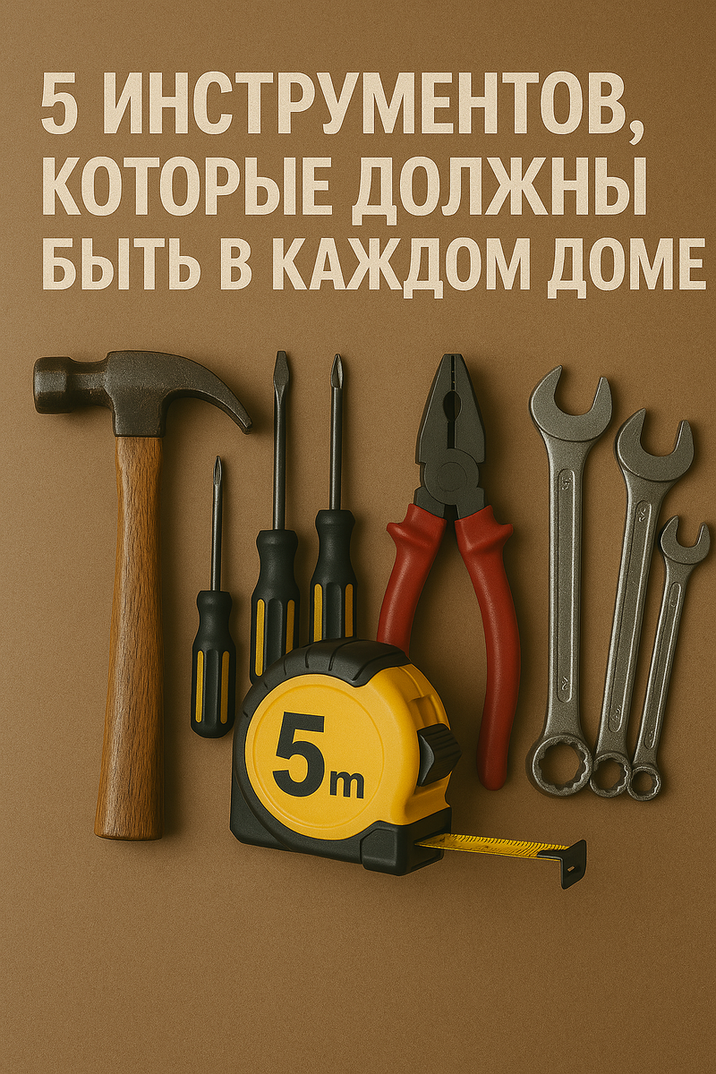 Чтобы обеспечить комфорт и эффективность работы в доме, рекомендуется оборудовать мастерскую хотя бы базовым набором из пяти ключевых инструментов: