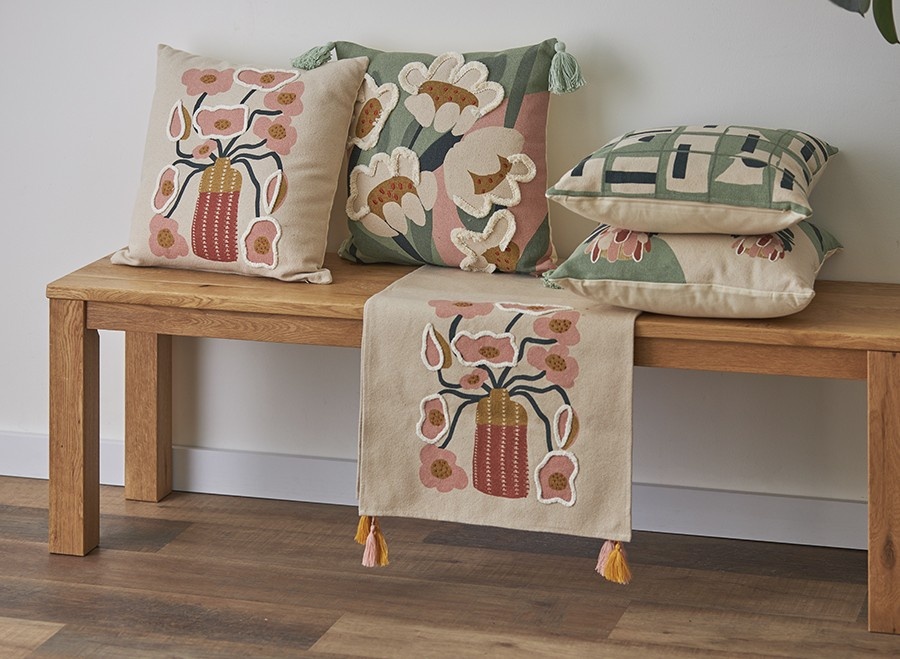 На фото: Подушка декоративная Ancient murals из коллекции Ethnic, Подушка декоративная Herbarium из коллекции Ethnic, 45x45 см, Подушка декоративная с геометрическим принтом из коллекции Ethnic, 45х45 см, Подушка декоративная с контрастным кантом из коллекции Ethnic, 45х45 см