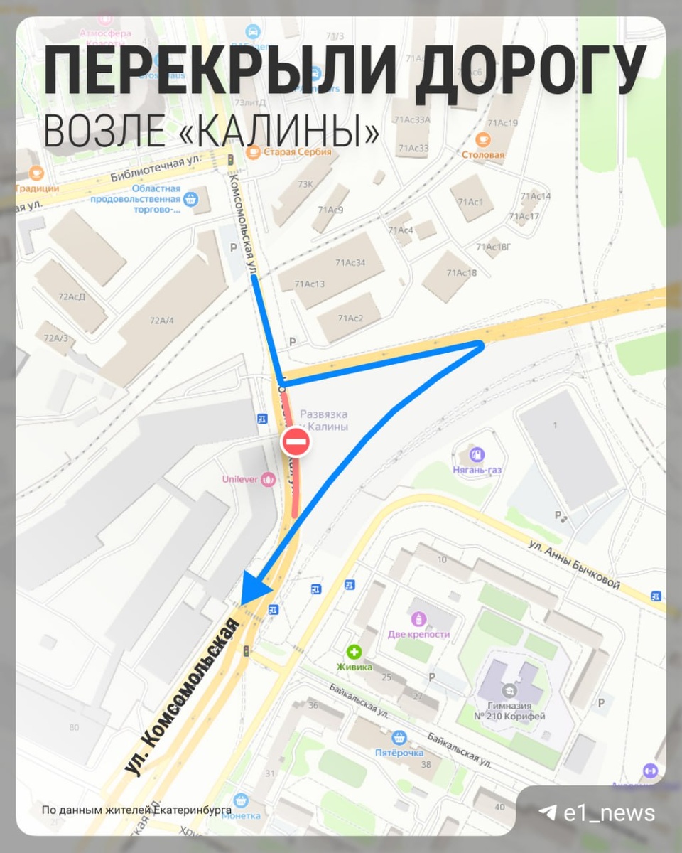 Возле «Калины» в Екатеринбурге изменили схему проезда, будьте внимательны Е1 сообщает, что перекрыт кусочек дороги, ведущий от Комсомольской в сторону Базового. Будьте внимательны при выборе маршрута движения, автобусная остановка также закрыта. @zg66