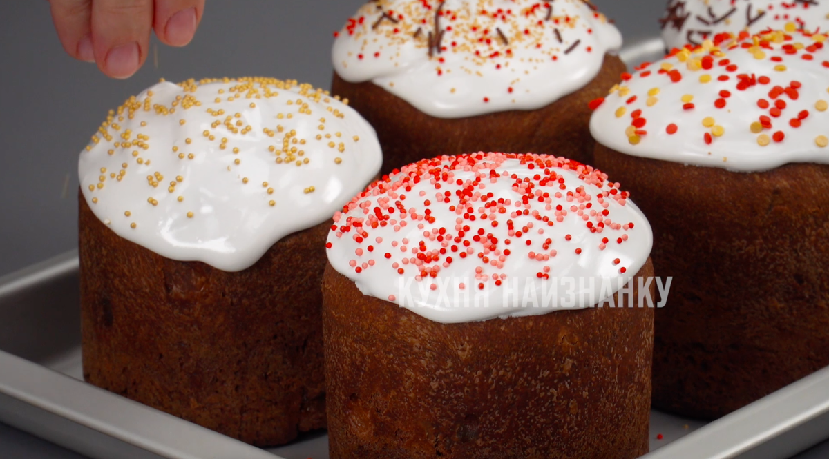Вкусная, белоснежная и гладенькая глазурь получается. Она всегда отлично застывает, не липнет и не отсыревает. Использую такую глазурь также для пасхальных рулетов и булочек. При разрезании кулича глазурь немного крошится, но я не считаю это минусом. Чаще всего именно такую глазурь готовлю для куличей. Яйцо хорошо мою с содой и заливаю кипятком на 20-30 секунд. Отделяю белок от желтка. Можно убрать белок в холодильник или оставить на столе. Температура не повлияет на результат. Взбиваю яичный белок обычно миксером. Или можно это сделать простым венчиком (чуть дольше по времени, но тоже получится). Бабушка моя взбивала белок обычной вилкой. В три этапа всыпаю сахарную пудру. И продолжаю взбивать. Обязательно добавляю щепотку лимонной кислоты в конце. Глазурь получается белоснежная, с легкой кислинкой и хорошо держится на куличах. Наношу глазурь на ещё тёплые куличи. Нанесла на два-три кулича - и сразу посыпаю цветным сахаром или другими украшениями. Если постоят больше минуты, глазурь