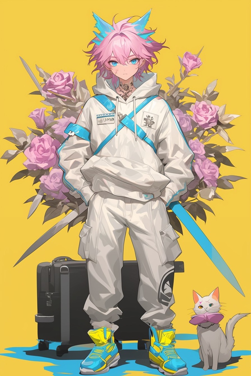 Создано на основе запроса: Neko anime guy standing and dressed in a tracksuit with short bright hair and heterochromia, a scar on his face and a tattoo on his neck in the form of a rose, full body --- Автоперевод: Парень из аниме Neko, стоящий и одетый в спортивный костюм с короткими яркими волосами и гетерохромией, шрамом на лице и татуировкой на шее в виде розы, всего тела Хорошо выглядит? 🤔 https://dzen.ru/id/65c0c65c86e4f837c27b24d7 #ИИ #AI #нейросеть #midjourney #art