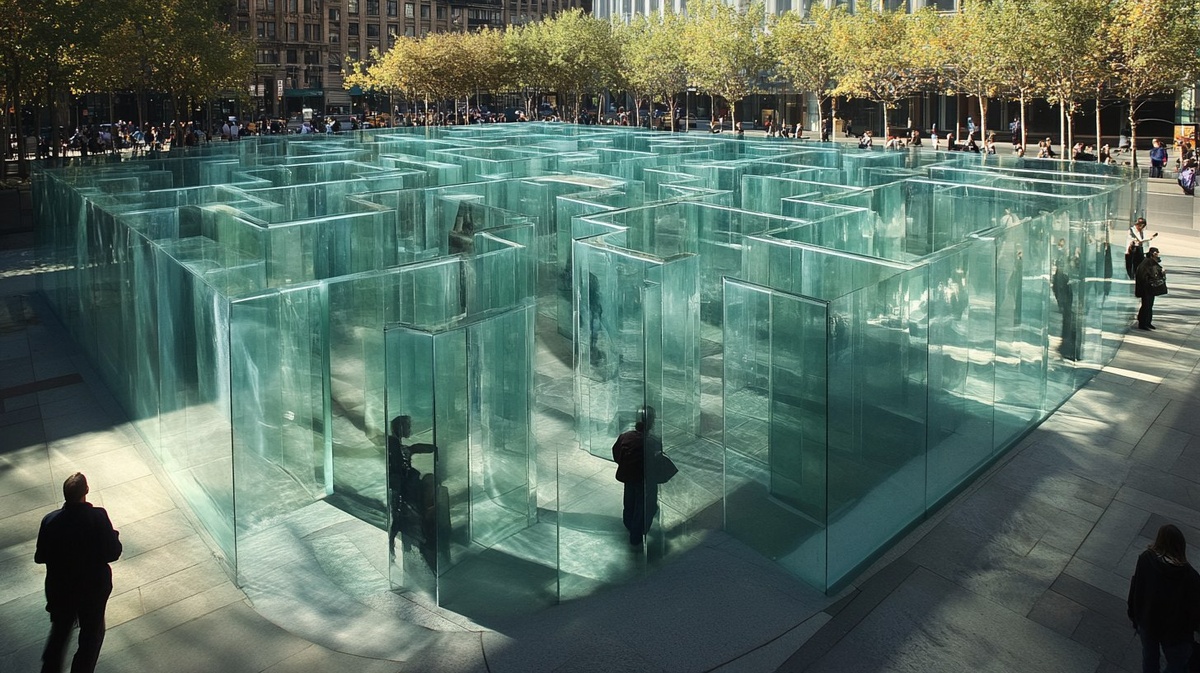 Создано на основе запроса: add people inside the maze, and make the glass transparent, make the glass totally transparent, clear glass, not
