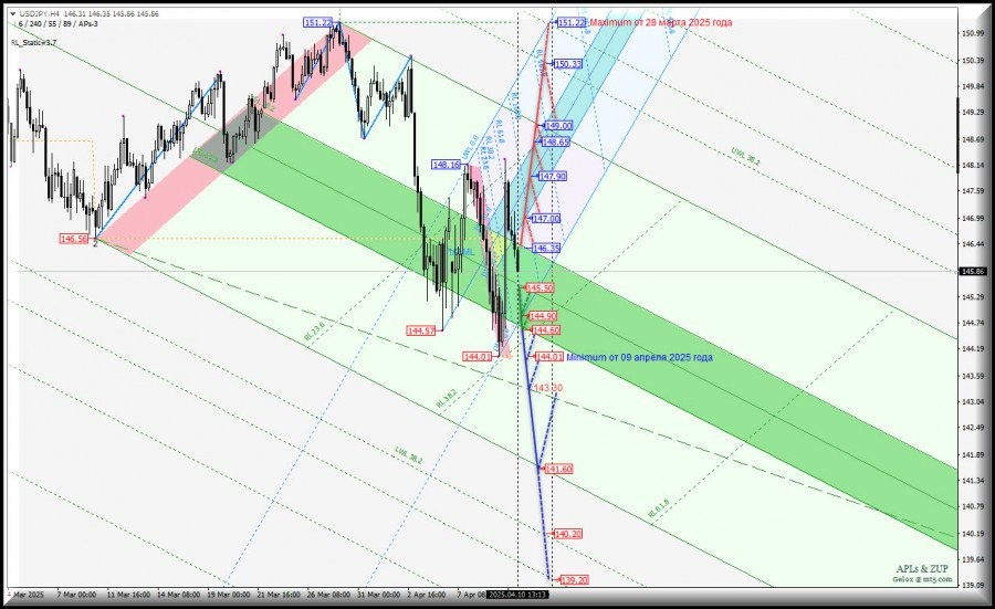 https://basechop.ru/wordpress/?p=37952 Операционный масштаб Minute (таймфрейм h4) USD/JPY – h4 – обзор вариантов развития движения данного валютного инструмента с 11 апреля 2025 г. ___________________ US Dollar vs Japanese Yen Развитие движения USD/JPY-h4 с 11 апреля 2025 года будет обусловлено границами зоны равновесия (144.50 – 145.60 – 146.35) вил старшего операционного масштаба Minute-h4 и продолжится в соответствии с отработкой и направлением пробоя диапазона: – уровень сопротивления 146.35 на верхней границе ISL38.2 зоны равновесия вил старшего операционного масштаба Minute-h4; – уровень поддержки 145.50 на срединной линии Median Line Minute-h4. Нисходящее движение. При пробое срединной линии Median line Minute-h4 – уровень поддержки 145.50 – движение валюты “страны восходящего солнца” продолжится к начальной линии SSL (144.90) вил младшего операционного масштаба Minuette-h1 и к нижней границе ISL61.8 (144.60) вил старшего операционного масштаба Minute-h4, а если указанн