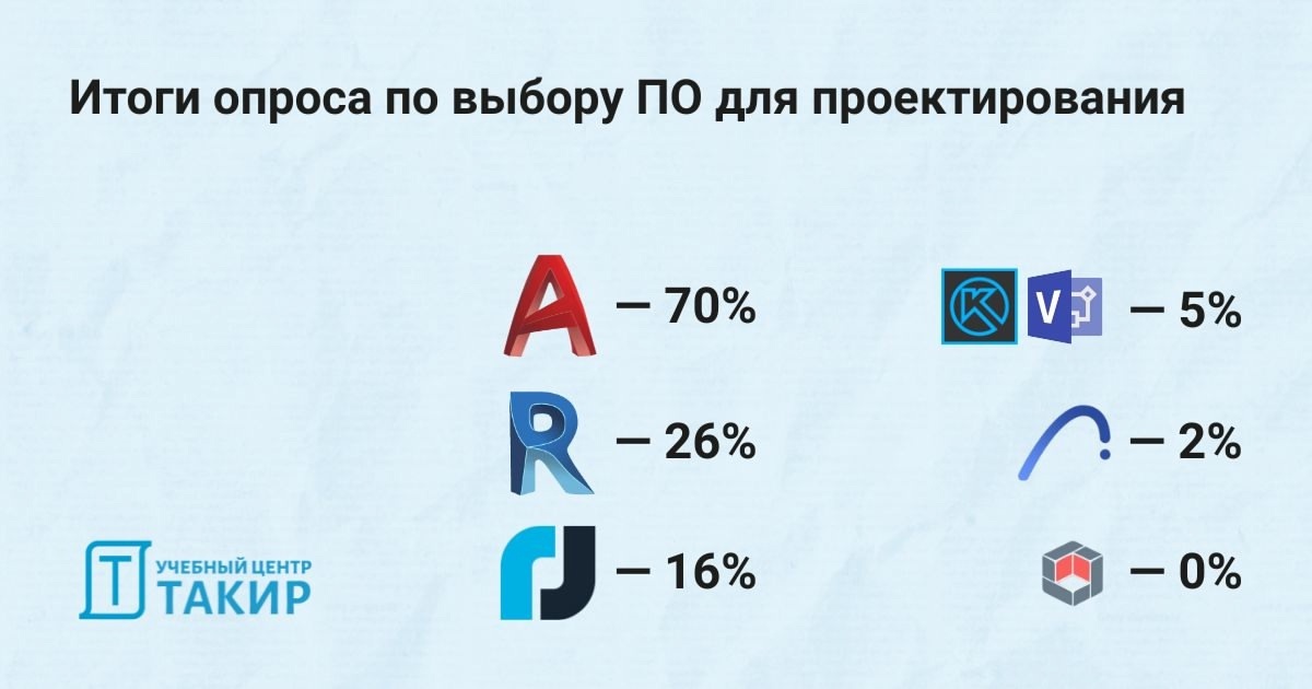 1⃣ AutoCAD — 70% (🔽2% к 2024)