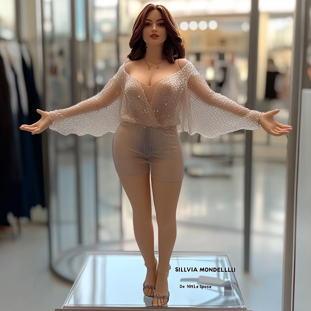 Создано на основе запроса: Progetta una action figure da collezione in una confezione minimalista etichettata "SILVIA MONDELLI". Sfondo bianco, confezione trasparente in stile atelier da sposa. Espressione sorridente. L'abbigliamento, la posa e lo stile devono corrispondere alla foto di riferimento della donna. La sezione accessori deve includere un iphone, un telefono fisso, un metro da sarta (quello arrotolabile), guanti da sposa, scarpe da sposa, fermagli gioiello da sposa, fazzoletto per le lacrime, veli, mollette di plastica, una borsa super capiente. Sulla scatola deve essere scritto "De Nittis Le Spose". Vorrei che la visualizzazione non sia completamente frontale ma che si intraveda anche la profondità della scatola. --- Автоперевод: Progetta una Action Figure Da collezione в Una confezione minimalista etichettata "Сильвия Монделли". Как тебе такой вариант? 🤔 https://dzen.ru/id/65c0c65c86e4f837c27b24d7 #ИИ #AI #нейросеть #midjourney #art