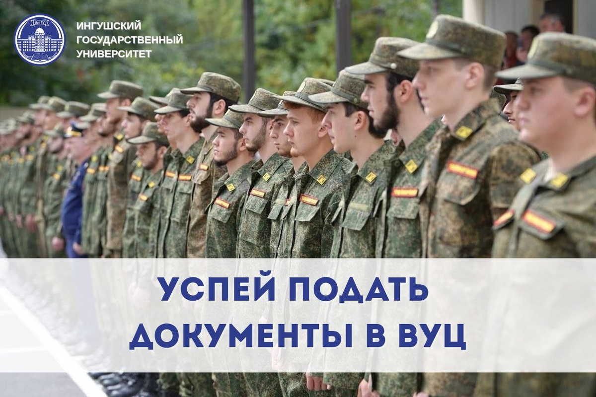 Внимание! Осталось очень мало времени — спешите! Уже в конце апреля Военный Учебный Центр при Ингушском государственном университете завершает прием документов! 🔔 Успейте подать документы: 1. Заявление. 2. Копии паспортов кандидатов с отметкой о регистрации (на одном листе). 3. Копии удостоверений кандидатов, подлежащих призыву на военную службу, с отметкой о постановке на воинский учет (на одном листе). 4. Характеристики на кандидатов для допуска к обучению в ВУЦ при ФГБОУ ВО «ИнгГУ» в бумажном варианте (готовит деканат). 5. Автобиографии кандидатов по установленной форме на магнитном носителе. 6. Фото 3х4 — четыре экземпляра. ❗️ Поступить в ВУЦ имеют возможность все студенты ИнгГУ первого курса, а также студенты медицинского института 1, 2, 3 курса. Не упустите возможность получить военные знания и навыки во время учебы в университете, а по завершении обучения — военный билет! | По вопросам поступления: 📌г. Назрань ул.Магистральная 39 А корпус 3Д. 📞 +7 967 333-41-11