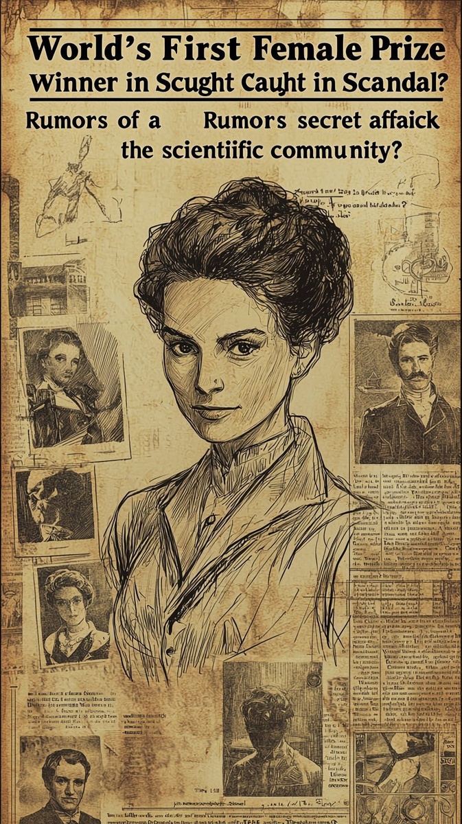Создано на основе запроса: Anime-style vertical composition resembling a dramatic vintage newspaper front page. Bold headline at the top: "World’s First Female Nobel Prize Winner Caught in Scandal!?" Sub-headline below: "Rumors of a secret affair shock the scientific community." In the center, a stylized sketch or portrait of a famous female scientist (e.g. Marie Curie), looking serious or slightly embarrassed, with faded photos or silhouettes of a mysterious man in the background. Sepia-toned, paper texture, dramatic lighting, old newspaper aesthetic with a modern anime twist --- Автоперевод: Вертикальная композиция в аниме, напоминающая драматическую винтажную газету. Необычно вышло? 🤔 https://dzen.ru/id/65c0c65c86e4f837c27b24d7 #ИИ #AI #нейросеть #midjourney #art